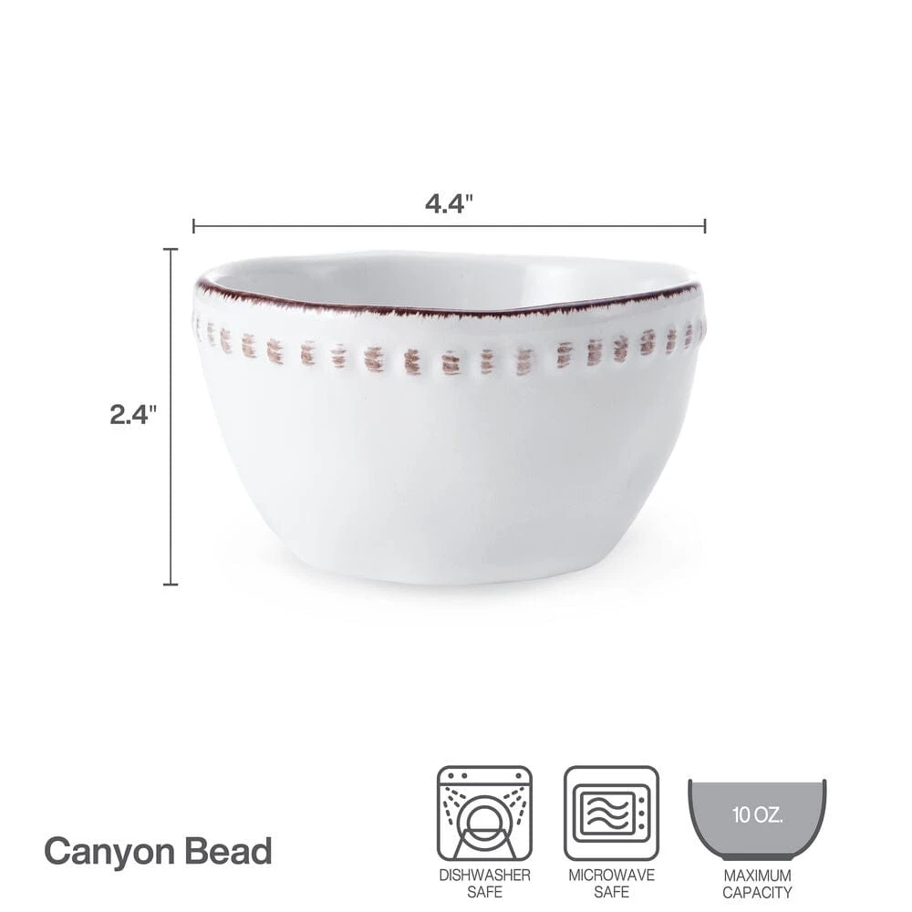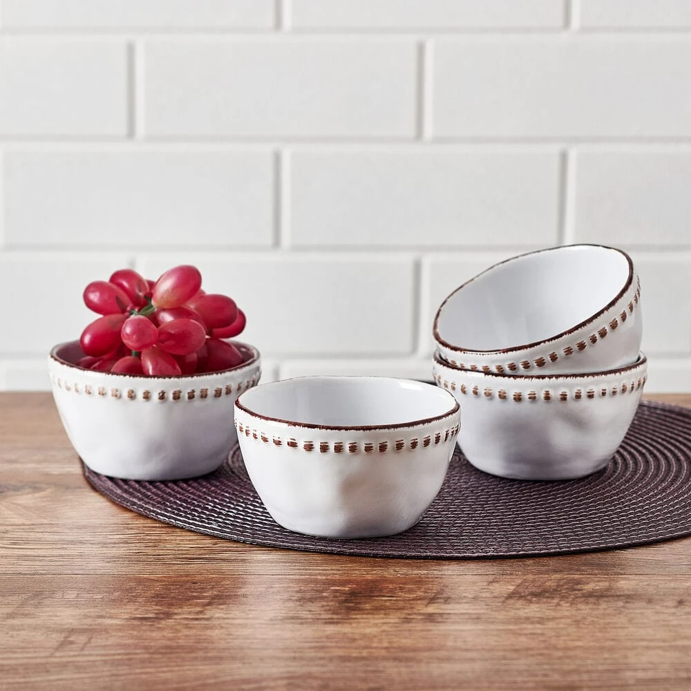 This Canyon Bead Fruit Bowl Set features a unique, warped shape, with large yet subtle dents on the surface, and a beaded band encircling the rim, adding a rustic and contemporary accent to your table.