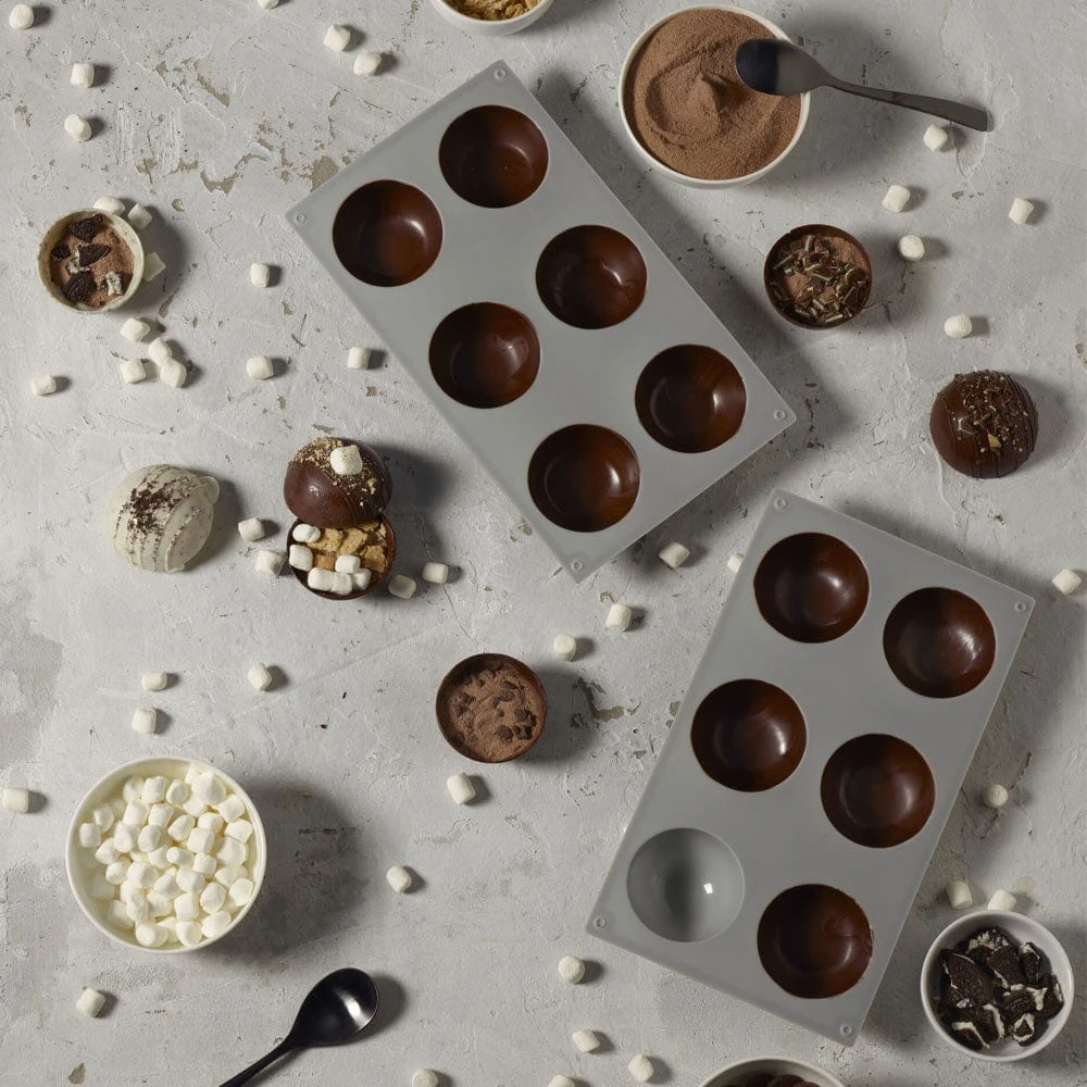 • Includes (2) each of the following color mugs: Blue, Turquoise & Gray & (2) Hot Chocolate Bomb Molds