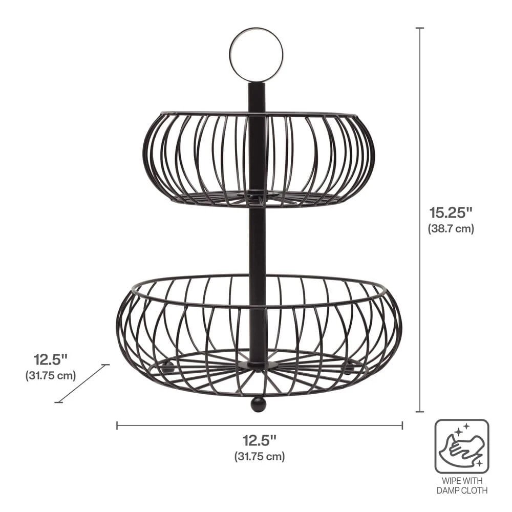 From the Gourmet Basics by Mikasa Collection, this Monroe 2 Tier Fruit Storage Basket can hold multiple items while taking up minimal counter or table space. Air flows through the open-wire design allowing fruits to ripen evenly, the black finish and striped details will compliment any decor.