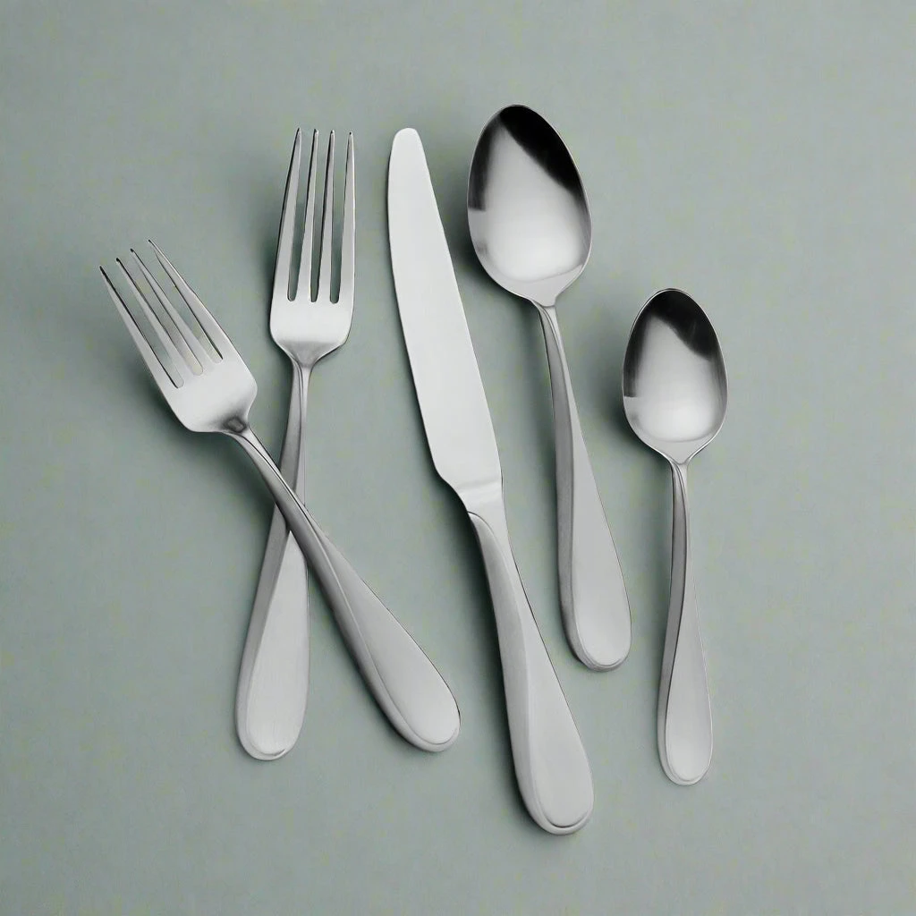 This Payton Frost Flatware Set features classic teardrop shaped handles with distinct, sculptural curves that gives your table setting a sense of depth and motion.