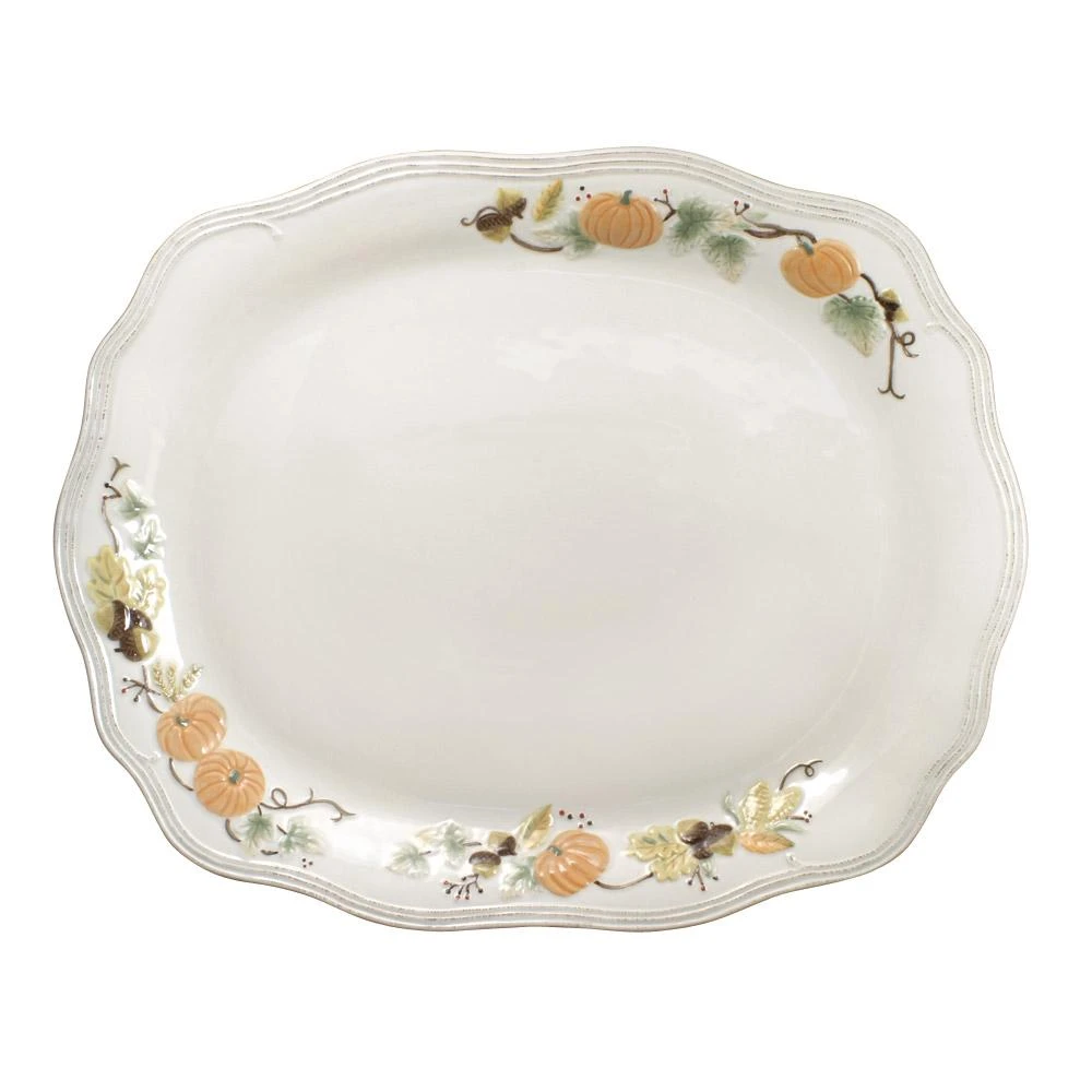 You’ve worked a long time on the turkey – and you want to serve it on a platter worthy of your creation. This large Oval Platter will be a perfect accent to your luscious, golden brown masterpiece. This substantial platter is perfect for your holiday meal. Crafted of earthenware. Hand wash. Oval platter measures 21 x 17 inches.