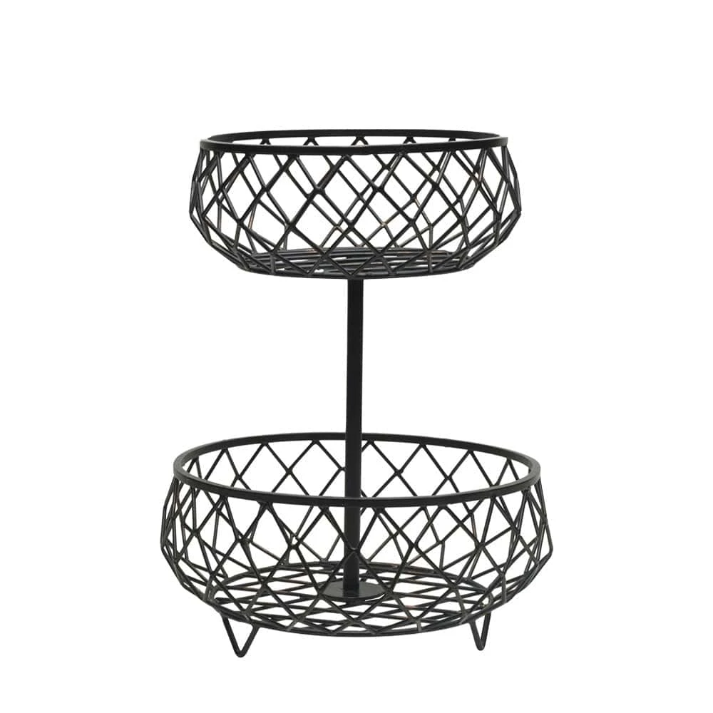 Outlet Deal for our Pfaltzgraff Customers. This Scott Living Catalyst 2 Tier Storage Basket features a wire frame design with an antique black finish, and air flows through the open-wire design allowing fruits breathe and ripen evenly. Also perfect to use the basket as a catch-all to keep essentials within reach.