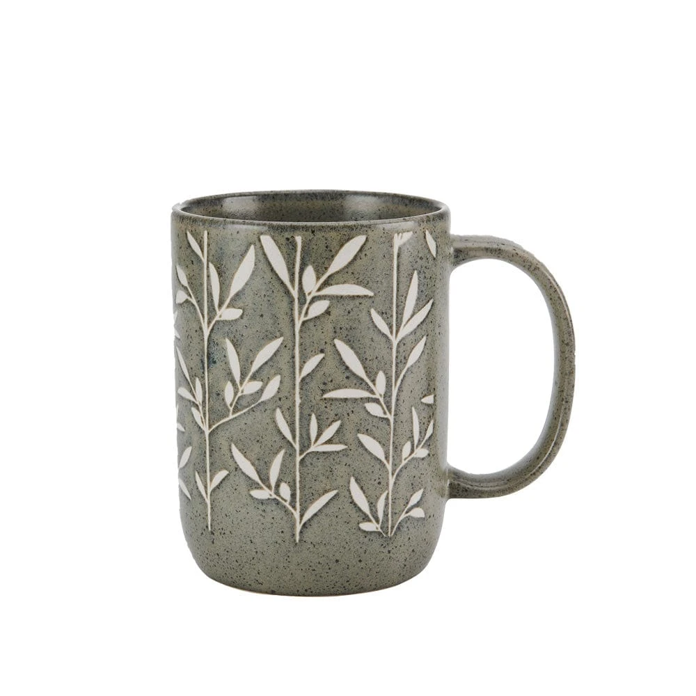 This sage Sentiment Mugs Botanical Leaf Mug features unique wax resistant details that will add flare and style to your table.